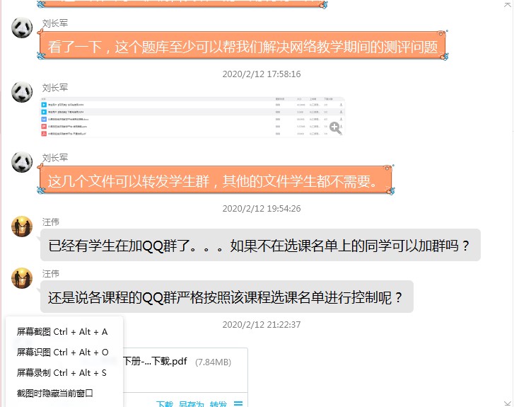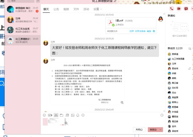 原理教研室老师分别通过QQ群进行了网络教研活动。