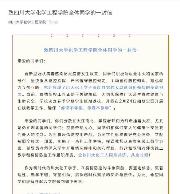 工会坚决贯彻执行习近平总书记关于新型冠状病毒感染肺炎疫情防控工作重要指示精神和党中央、国务院决策部署,按照教育部、四川省有关要求和《色情网址大全