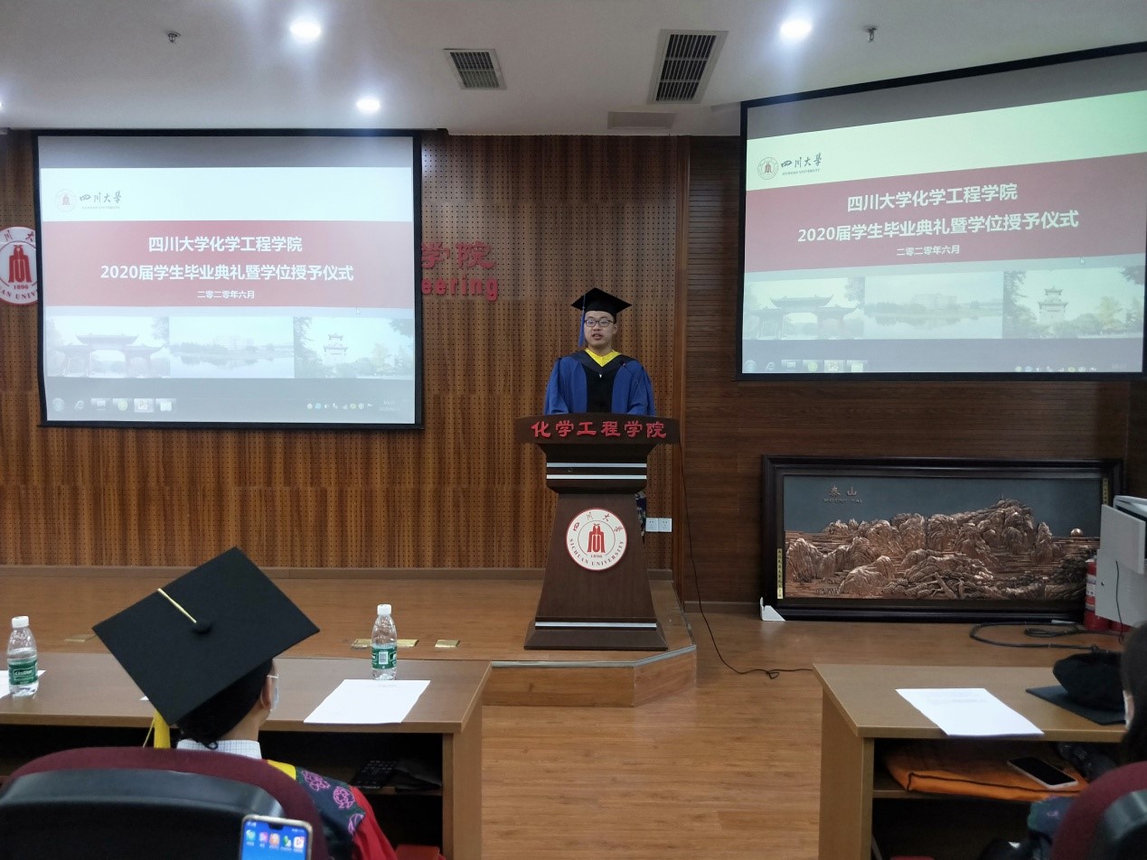 2020届学生毕业典礼暨学位授予仪式在望江校区正行楼313报告厅隆重举行。受疫情影响,本次毕业典礼暨学位授予仪式采用线上、线下同时进行的模式,部分学生代表和全体2020届毕业的18位博士研究生、207位硕士研究生和248位本科生及学生家长们通过网络线上模式齐聚一堂,在师长亲友的共同见证下,为自己的川大色情网址大全