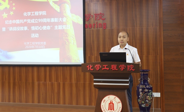 全国党建样板支部、化学工程系党支部副书记谢锐同志代表先进党支部交流发言。研究生第二党支部书记刘郭洁代表优秀共产党员及党务工作者交流发言。