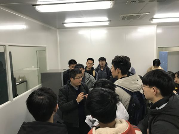 的专业实验室。天气寒冷也抵挡不住同学们走进实验室的好奇与热情。参观分两批进行,工程实验中心的魏竭、林翔老师提前做好了准备,热情接待大家。