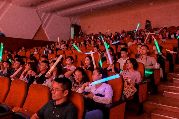 学子们的青春活力,绚丽的led灯光将舞台打造出光影的世界,为大家奉献了一场视觉盛宴。学艺双馨的老师们为大家带来的表演《乐器舞蹈串烧》可谓是惊艳绝伦,歌声铿锵有力、声动梁尘,乐器演奏行云流水,赢得了满堂喝彩。表演过后,开始了和观众们的积极互动,党史答题活动与微信上墙抽奖活动让现场的气氛瞬间变得火热。