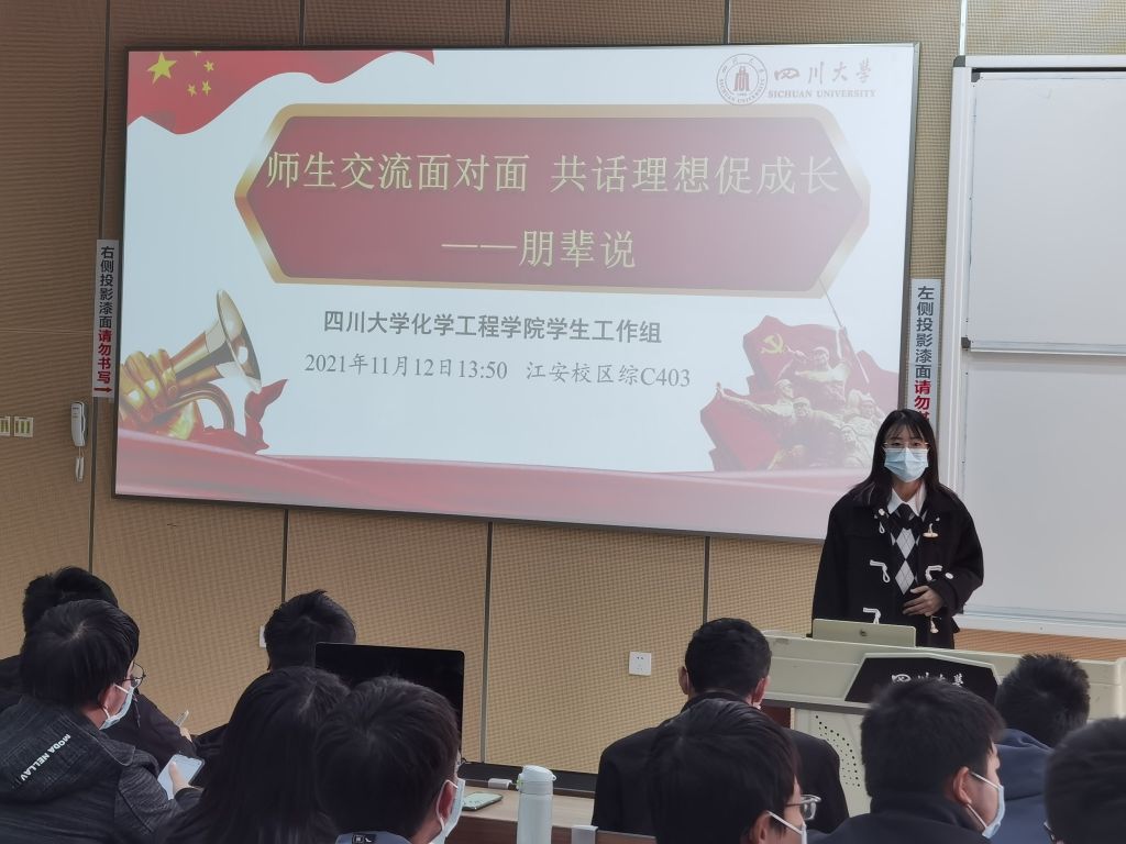 分享会伊始,姜利寒副书记关心了同学们近期的学习状态。她指出,进入大学后,不再有父母耳提面命、时刻监督,不再有老师不断严格要求,部分同学在成绩方面会进入懈怠状态。但是,同学们即将继续深造或步入社会,大学的时光就显得尤为珍贵。从人生的维度来看,学历越高、学识越广博,同学们的选择范围越大。通过专业知识的不断积累,同学们将树立对专业发展的明确认知,步履不停,行稳致远。作为优秀的川大学子,同学们不应当被湮没于芸芸众生,而应当勇立潮头,自强不息,力争在专业领域达到行业顶尖水平,引领时代潮流,这才是“大学之道”的真正含义。