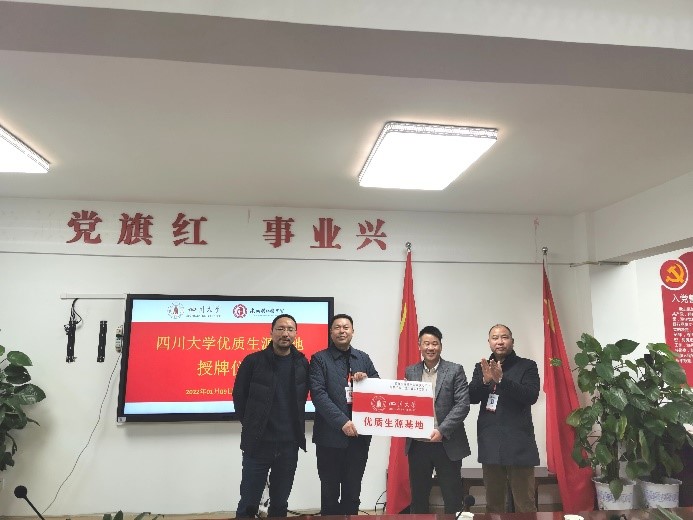 优质生源基地”授牌仪式。达州铭仁园中学教育集团总校长王义安、中学校长范永杰、校长助理李职君(院友,08级生物工程专业本科生)、教务处主任徐延锋、办公室主任王小涛以及王茂清老师参加了此次授牌仪式。