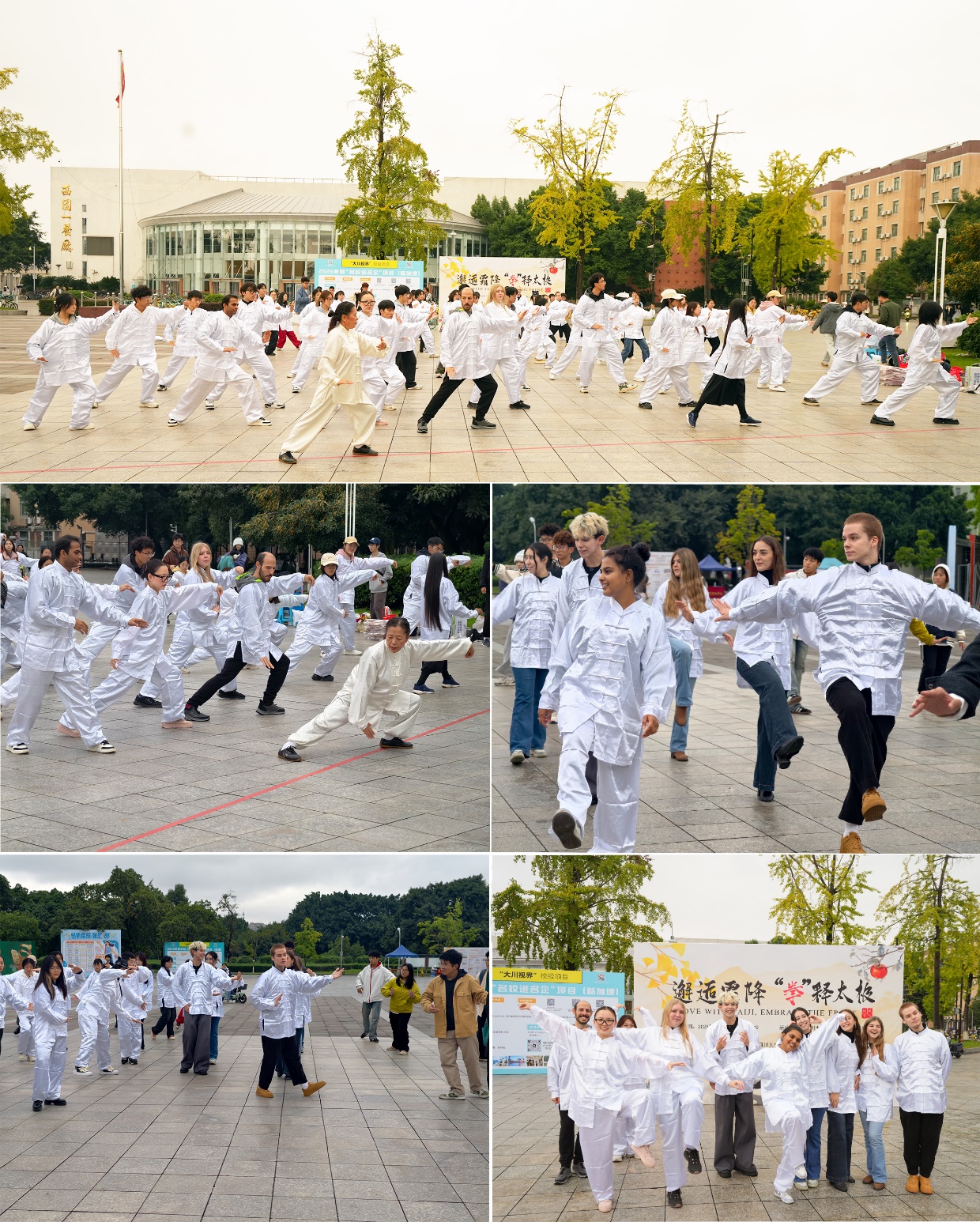 活动现场气氛热烈,互动频繁。中国学生主动担任起“临时助教”,帮助留学生纠正动作,讲解招式背后的文化故事。留学生们也分享了自己国家对类似身心修炼方法的理解。青春广场上,不同肤色、不同语言的学生因太极而结缘,因文化而共鸣。