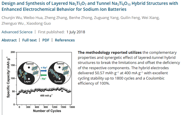 新能源材料与器件郭孝东副教授/钟本和教授课题组在钠离子电池负极材料取得重大研究进展,相关研究成果“Design and Synthesis of Layered Na2Ti3O7and Tunnel Na2Ti6O13 Hybrid Structures with Enhanced Electrochemical Behavior for Sodium-Ion Batteries”发表于国际顶级期刊《Advanced Science》 (影响因子12.441)。色情网址大全