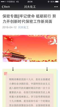 在宣传栏和微信公众平台宣传国家安全重点法律法规和党的十九大精神,增强了全院师生对国家安全、反间谍、反恐怖主义法律的了解,强化了公众维护国家安全和社会稳定的意识,让“总体国家安全观”入脑入心。每位师生都应铭记,每个公民都是国家安全红利的享受者,同时也承担着维护国家安全的责任,必须自觉做国家安全的坚定捍卫者。