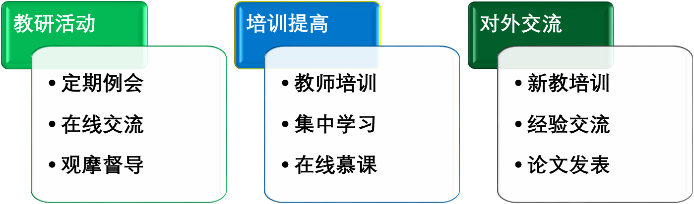 在课程改革的过程中,师资队伍的建设也随之而行。作为教研室主任的鲁厚芳老师现在回忆起来大家一起奋斗的日子仍然历历在目:“团队的教师们都是热爱教育又愿意扎根一线教学的老师们,从黄文辉老师、王世华老师、刘玉鑫老师、谢川老师、卫永祉老师等,每一位教师都在为化学基础教育贡献着自己的青春和热血。在几代人的共同努力下,我们已经形成了良好的梯队结构,师资队伍年龄在30-50岁之间,传帮带的优良传统一直保持。每两周的例行教研活动和期末的集体答疑、集体阅卷成为了大家分享和交流教学经验和教学成果的平台,很多的新理念和新想法都是在大家的思想碰撞中激发出来的”。