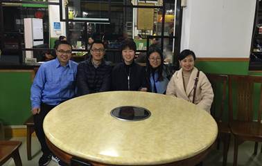 (姜利寒副书记等人与我院校友员工梁俊、王攀交流合影)