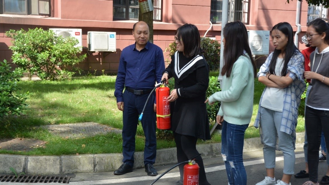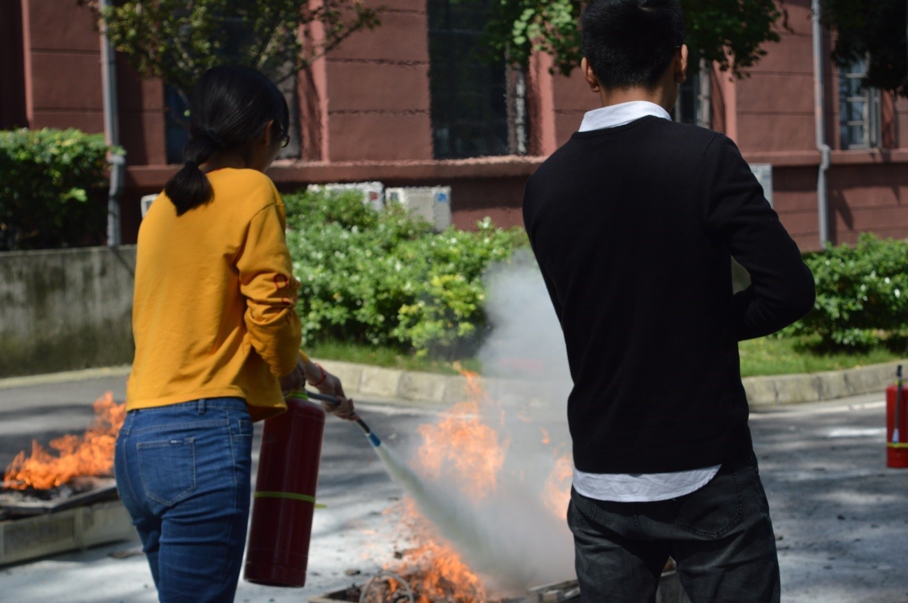 安全秘书胡毅老师莅临现场指导。教练详细地给同学们讲解了灭火器、灭火毯、消防沙的使用方法。在教练的指导下,同学们依次上前进行灭火操作,学习了正确的灭火操作技巧。