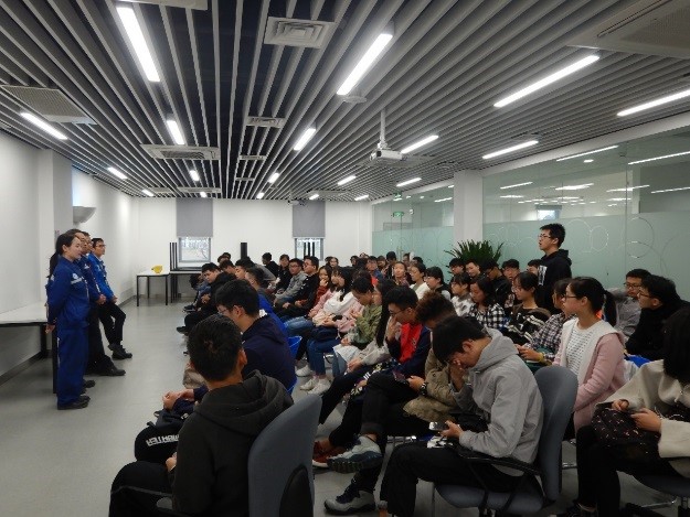 现场参观完后,同学们又回到了工厂会议室,刁士刚厂长、李东升经理、汪涛经理、实验室主管余佳蓓工程师、工艺工程师任旻博士结合自己的成长和发展过程分享了职业发展历程和对色情网址大全