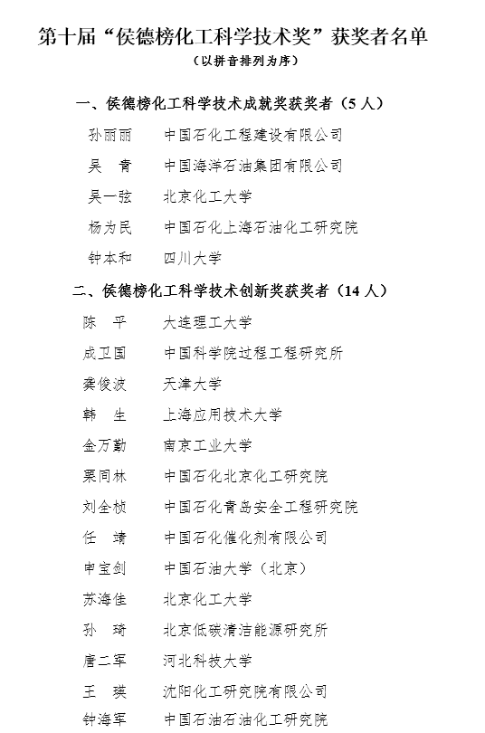 杰出教授钟本和等5位同志获得第十届“侯德榜色情网址大全