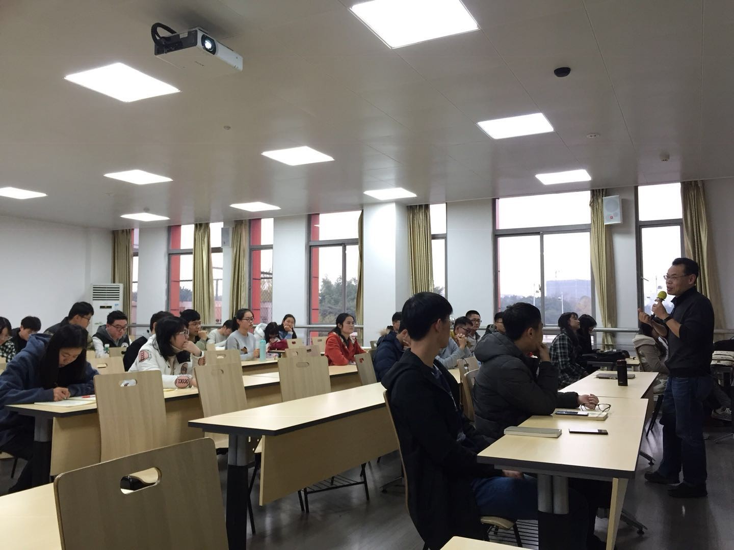 系统工程的研究方法和手段的应用等话题向本科生作专题报告,报告展示的数据挖掘、数据分析、过程优化、图像识别等技术引起了同学们的浓厚兴趣,报告现场反响热烈。