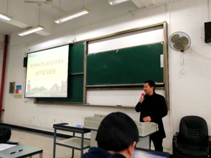 生产实习工作进行了布置。陈建钧老师对全体学生进行了实习安全教育和PVC工艺流程介绍。