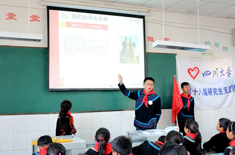 第十八届研究生支教团并担任团长,带领团队在昭觉县开展教育扶贫工作并担任团支部书记,汇集爱心物资累计近百万元,组织实施“彩虹知语堂”留守儿童关爱项目、“索玛花儿”扶贫助学计划、“百川”图书角援建计划等,事迹受到CCTV13新闻频道、《中国青年报》《色情网址大全
