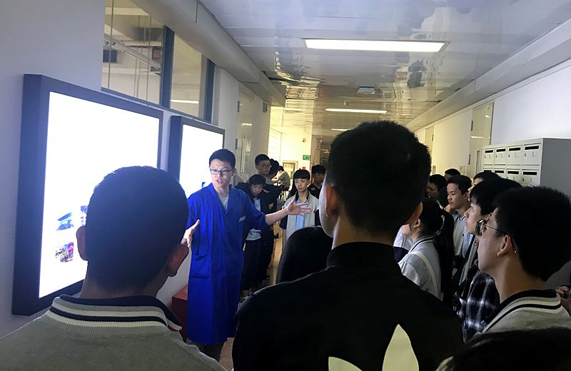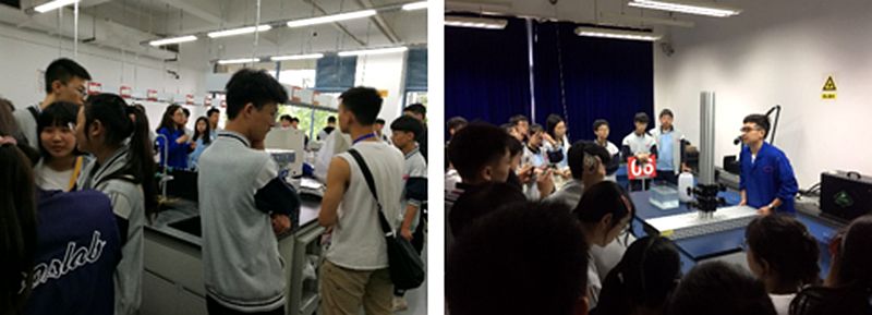 专业实验室,左炀、魏竭老师对一些精密仪器设备的功能、原理和运行情况进行了详细讲解。并与参观学生进行了深入地交流,对他们提出的疑问给予了解答,现场气氛十分活跃。