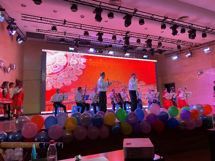 学子们的青春活力,绚丽的led灯光将舞台打造出光影的世界,为大家奉献了一场视觉盛宴。学艺双馨的老师们为大家带来的表演《乐器舞蹈串烧》可谓是惊艳绝伦,歌声铿锵有力、声动梁尘,乐器演奏行云流水,赢得了满堂喝彩。表演过后,开始了和观众们的积极互动,党史答题活动与微信上墙抽奖活动让现场的气氛瞬间变得火热。