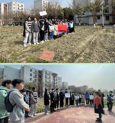 2021级学生在辅导员李珍珍老师的带领下,在开心农场举行了以“春耕播‘种’•不负春光•不负自己”为主题的新学期劳动教育动员大会。因疫情防控要求,参加此次动员大会的26位学生分别是每个班级推选出的“劳动小能手”。