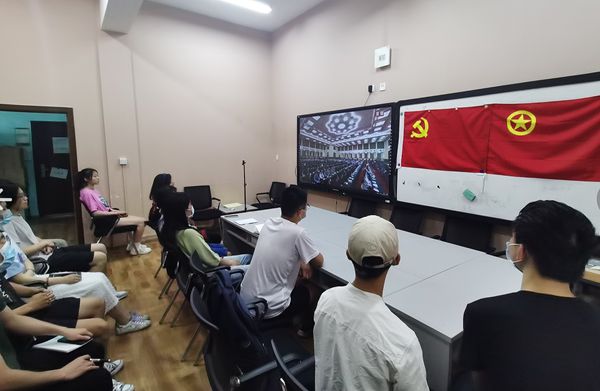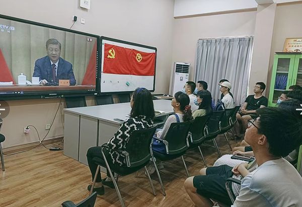 党委副书记姜利寒老师、辅导员司振兵老师、李珍珍老师、李忆雯老师以及数十名党员、团员代表,共同认真收听收看热烈庆祝中国共产主义青年团成立一百周年的直播活动。此外,很多学生纷纷自发在寝室内观看,累计参与达500余人次。