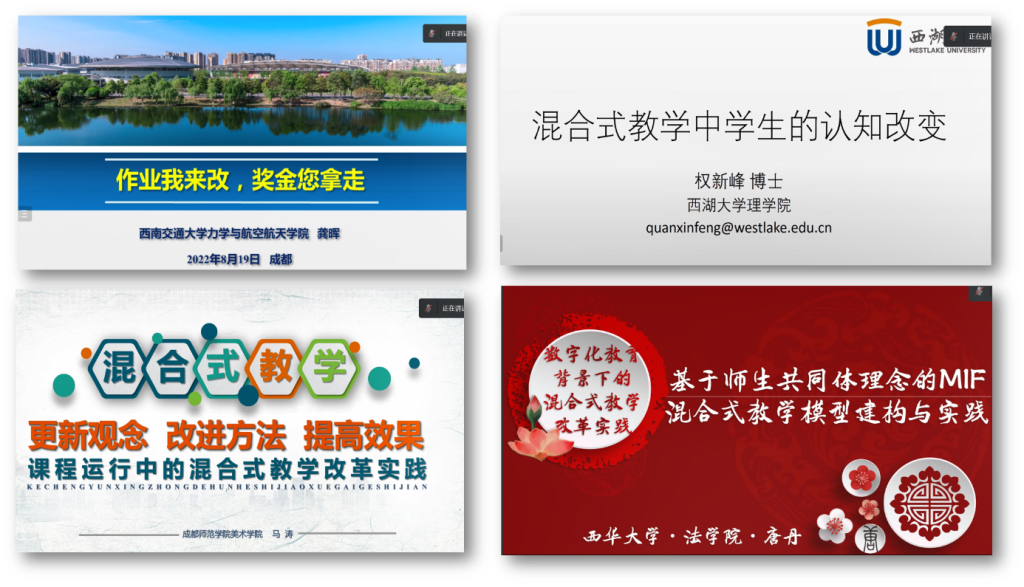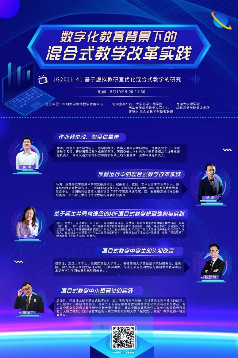 、智慧树平台和混合式教学创新者联盟共同举行了主题为“数字化教育背景下的混合式教学改革实践”的校际在线研讨会,共有704位校内外的教师参与研讨会,该研讨会也是省级教改项目JG2021-41基于虚拟教研室优化混合式研究的重要实践。