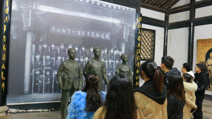 首站来到了大通学堂,参观了教室以及练武场所。大通学堂是光复会领导成员徐锡麟、陶成章为联络、训练各地会党,培养军事干部而创立。它是辛亥革命在浙江的活动中心,也是中国近代最早培养民主革命人才的军事学校之一。随着起义失败,秋瑾在此被捕,学堂被清政府查封。当时革命者生活艰苦,为联合各派,实现民主革命大联合想方设法,决定对会党骨干加以培养和教导。