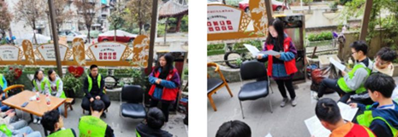 利用中午休息时间,“青鸟”志愿者们向赵曦老师询问并了解社区的有关知识,通过沉浸式走进社区来认识和了解社会,增强社会实践能力和社会责任感。赵曦老师指出,社区是政府与社会的对接窗口,是社会治理的最小缩影,牵动着党政、社会和市场的多元力量;社区是生活的百宝箱,对居民的咨询和要求有求必应,希望大家肯定社区、支持社区,也鼓励同学们作为返乡志愿者参与到社区工作中来。