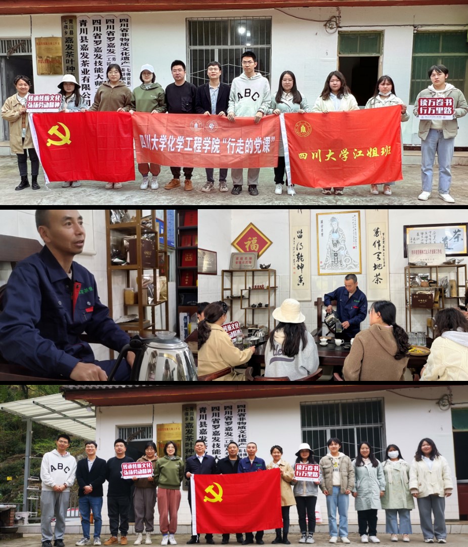 师生们在青坪村党支部书记、村委会主任王永明和沙州镇党委委员、组织宣传委员马骥的陪同下,走进青坪村——国家巩固拓展脱贫攻坚成果村级实践交流基地,恰逢2023年“白叶一号”基地的采摘仪式,真切感悟“一片叶子感党恩 携手同心话振兴”。走进茶史馆传承了茶文化,熟知了“白叶一号”的“采摘-堆放-杀青-理条-烘干”制作工艺,了解了“白叶一号”数字驾驶舱平台,大家纷纷感叹“一片叶子,成就了一个产业,振兴了一个乡村”!走进家风家训馆,深刻感受中华民族传统美德中的廉洁思想和家国情怀,发扬优秀的家风家训,廉洁修身!走进茶园基地,放眼望去连绵起伏的茶山春意盎然,经过培训后大家开始忙碌起来,沉浸式体验采茶劳作,十指撷新芽,双手蝶翻飞。
