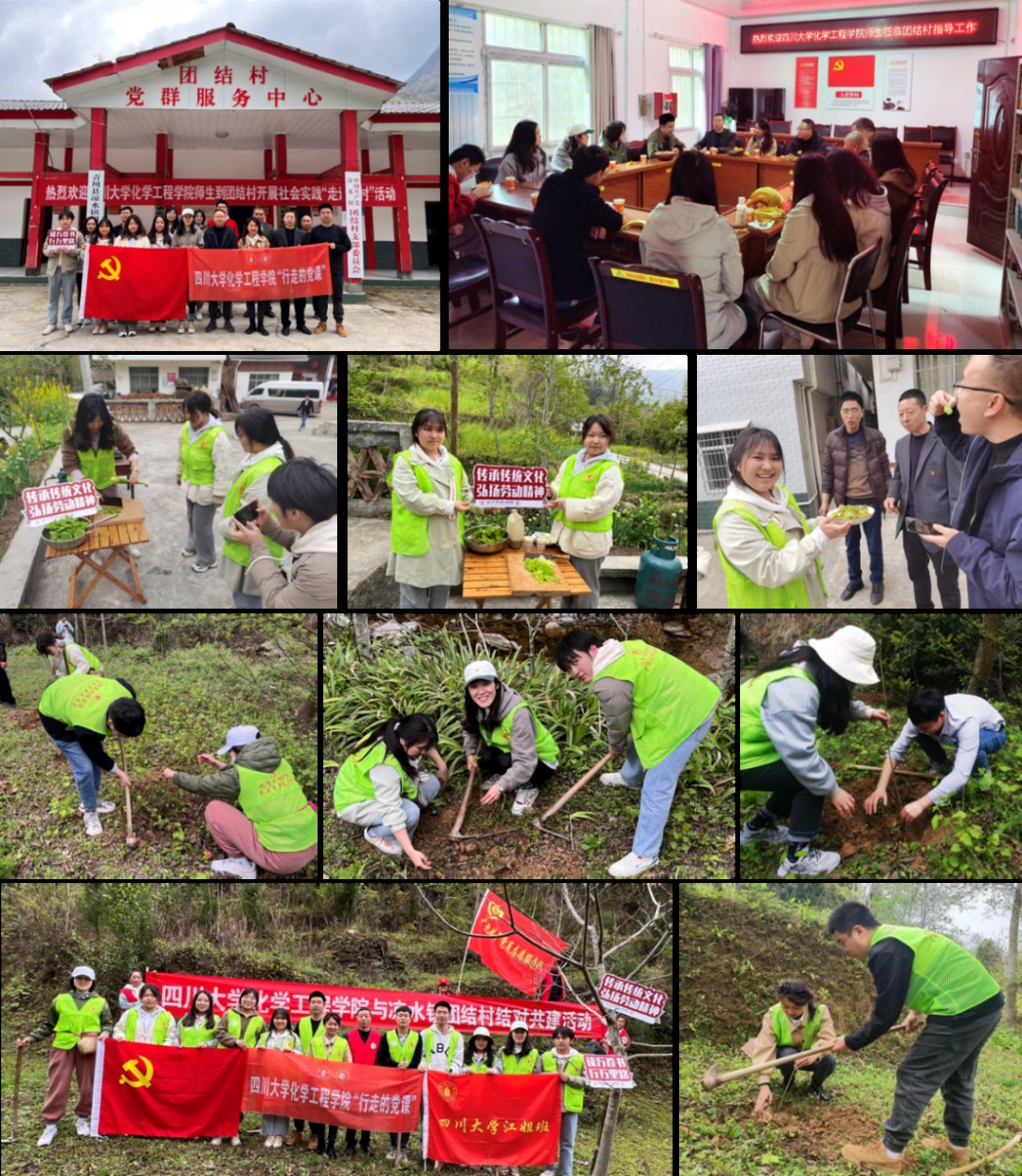 师生在凉水镇党委副书记张正浩,凉水镇组织委员刘鹏,凉水镇统战委员、团结村驻村干部李玉波,团结村党支部书记、村主任付太兴,团结村副主任赵仕安,团结村文书唐代玉,团结村村委资料员赵芳的陪同下,走进团结村,围绕风俗文化、产业发展、规划建设、社会治理等乡村振兴热点问题广泛调研和交流,并实地查看乡村风貌建设、特色农业扶持情况、支柱产业发展情况。走进农户院坝,从民生问题入手畅谈二十大精神,丰富精神文化生活;从品尝劳动美食入手开展“炒家常菜”劳动体验,弘扬劳动精神品格。走进荒山荒地,与广元市党员志愿服务队结对共建完成“学习雷锋光荣劳动”活动,扛着锄头、背着背篓、提着水桶、带着树苗和玉米种,学习雷锋上山种树播种,守护青山绿水助力乡村振兴!