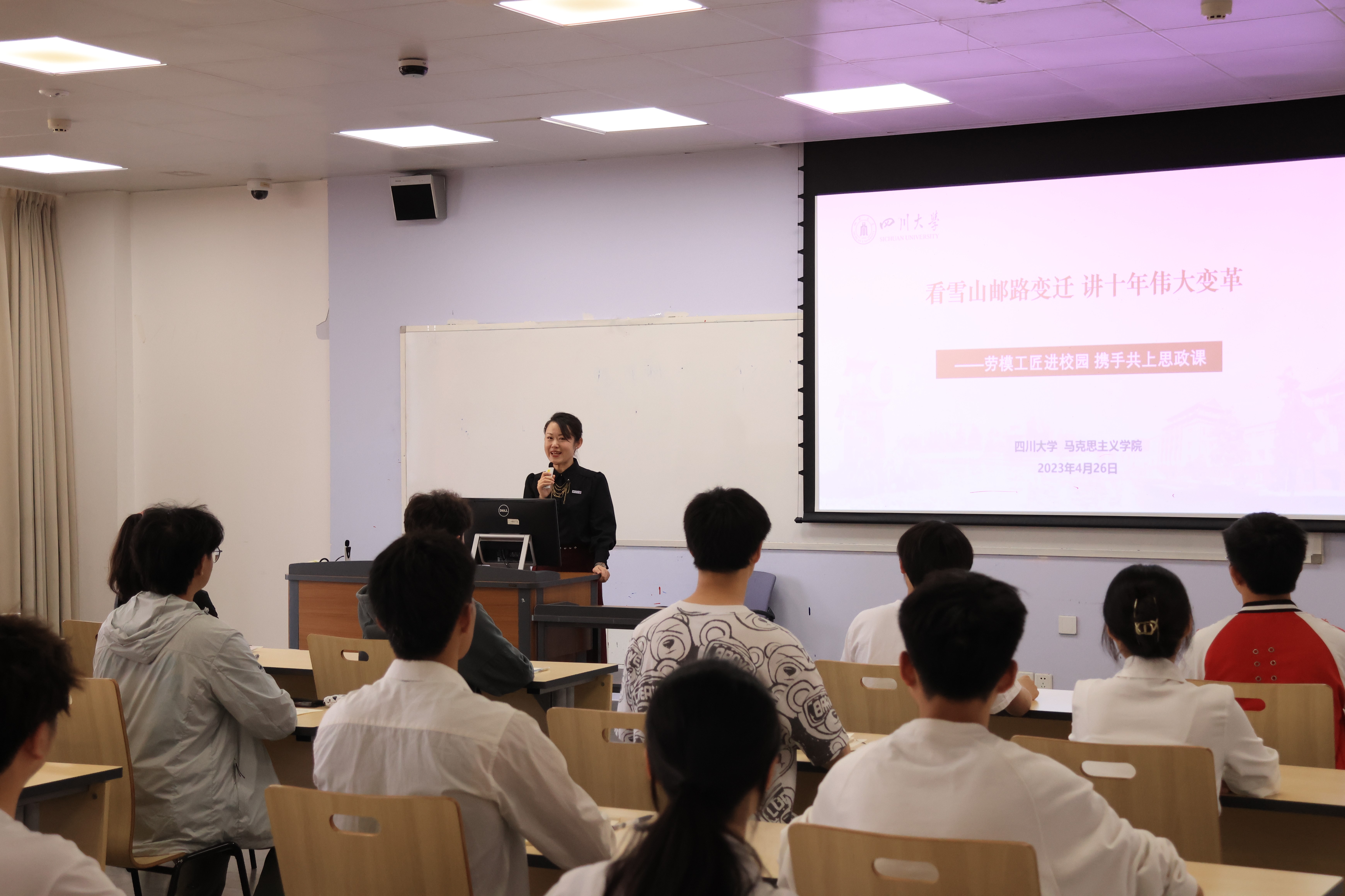 王丽鸽老师则以其美多吉的人生经历为引子,精彩阐述了新时代10年的伟大变革,紧紧围绕“看雪山邮路变迁,讲十年伟大变革”主题进行授课。从身边的劳模工匠先进典型中汲取精神力量,既有活生生的案例,也有系统的阐述,在感受榜样的力量中倾听时代的变革,思政课由小见大的表达,引起了现场学子们的共鸣。江姐班学生邱天谈到,“个人成长和时代发展是相辅相成的,个人成长是时代发展的源动力,而时代发展为个人成长提供了机会。我们要将个人发展融入时代发展中,坚定中国特色社会主义道路,将自我革命融入到社会革命,我们要像其美多吉老师一样发扬钉钉子精神,将自己所学的色情网址大全