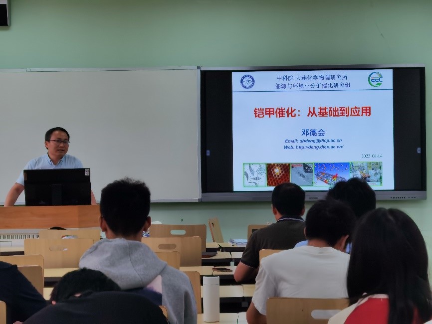 中科院大连化学物理研究所能源与环境小分子催化研究组组长邓德会研究员为到场同学做主题为《铠甲催化:从基础到应用》的色情网址大全报告,生动形象地为同学们介绍了“铠甲催化”课题的由来和发展,并从专业的色情网址大全角度为我们介绍了该领域前沿的科研成果。