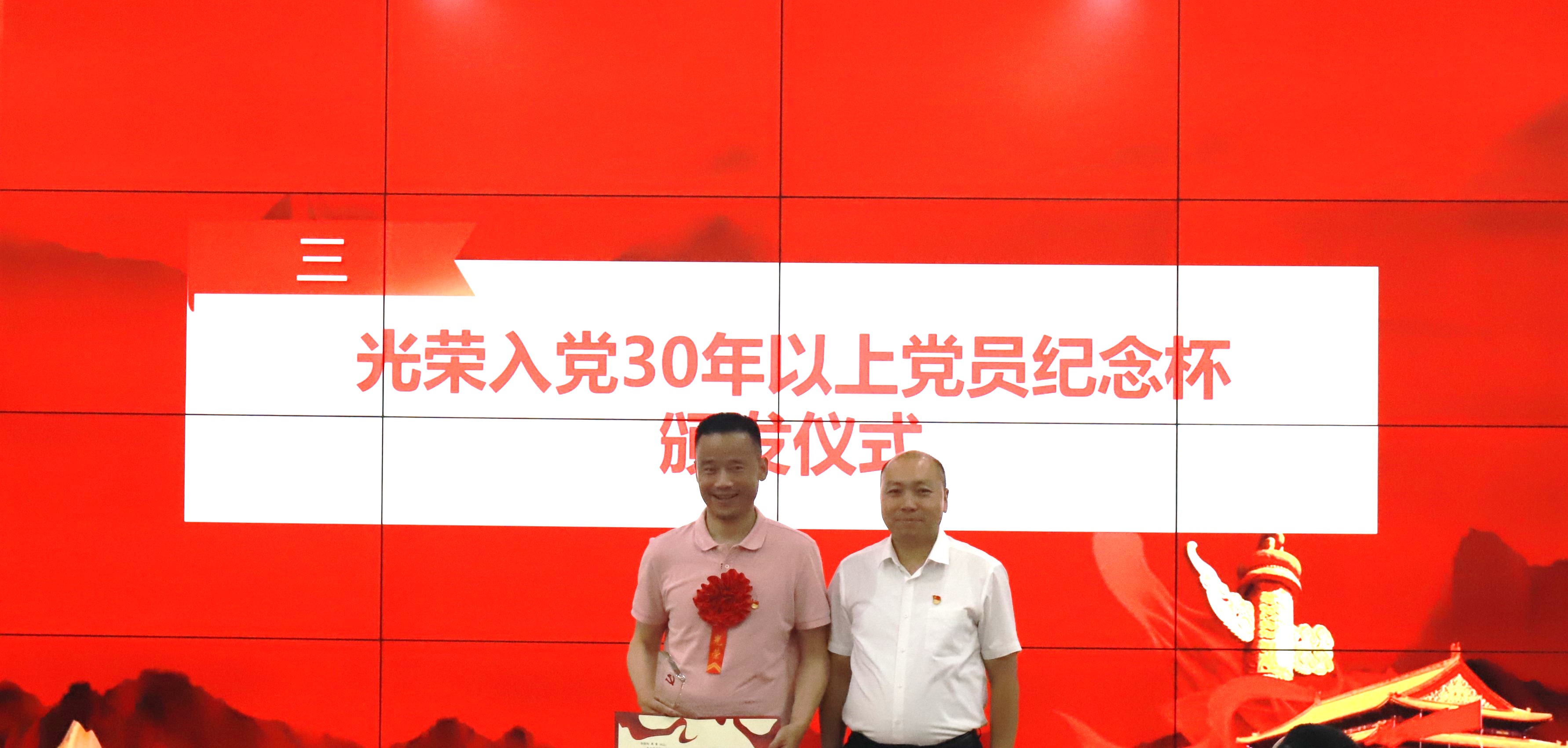 党委书记李天友为党龄满30年的周密老师颁发了纪念牌。