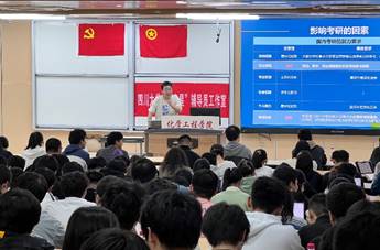 团委及“定盘星”辅导员工作室于2023年11月10日下午16:30,在江安校区综合楼C座207教室成功举办“升学大讲堂”之“考研留学双保险”培训讲座。本次讲座的嘉宾为成都新东方国际教育培训部章超老师,辅导员付率和2021级全体本科生参加本次活动。