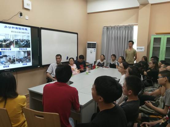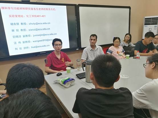 首先,刘壮老师分别为学生们简短的介绍了四位课题组老师的科研方向等情况。随后由汪伟老师开始了交流活动的第一环节:走进“膜科学与功能材料研究室”。其向同学们介绍了“膜科学与功能材料研究室”师资力量雄厚,实验器材完备的现状;“膜材料与膜技术”、“智能化控制释放与靶向式药物送达系统”、“微流控技术”、“传质与分离”以及“生物材料”等主要研究领域以及实验室丰富多彩的文化。