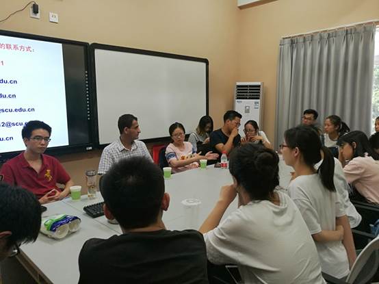 通过汪伟老师的介绍,在场的同学对于“膜科学与功能材料研究室”有了更加深入全面的了解。接下来同学们主要围绕着保研夏令营、研究生面试以及出国交流学习三个方面向老师们提出了各自的想法和疑惑。老师们一一进行了耐心解答,并给大家传授了众多有关于研究生面试的技巧。随后在老师的鼓励下同学们开始大胆踊跃的用英文请教Yousef Faraj副教授关于国外与国内大学教学的不同之处和是否有必要出国学习以及国外导师对研究生的选拔有何标准等问题,Yousef Faraj副教授非常热情的给同学们进行了解惑。